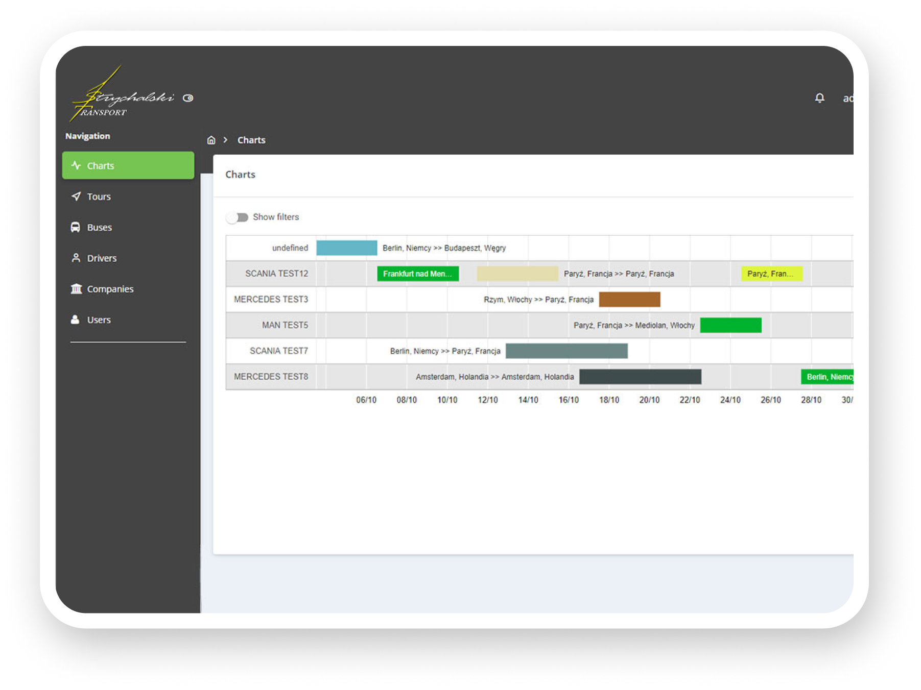 Smart algorythm suggests an appropriate driver and vehicle for the trip. In any cases, we provided possibility edit existing data manually and set up filtration by specified parameters. Polandtrip team members are able to add new buses and drivers in the system.